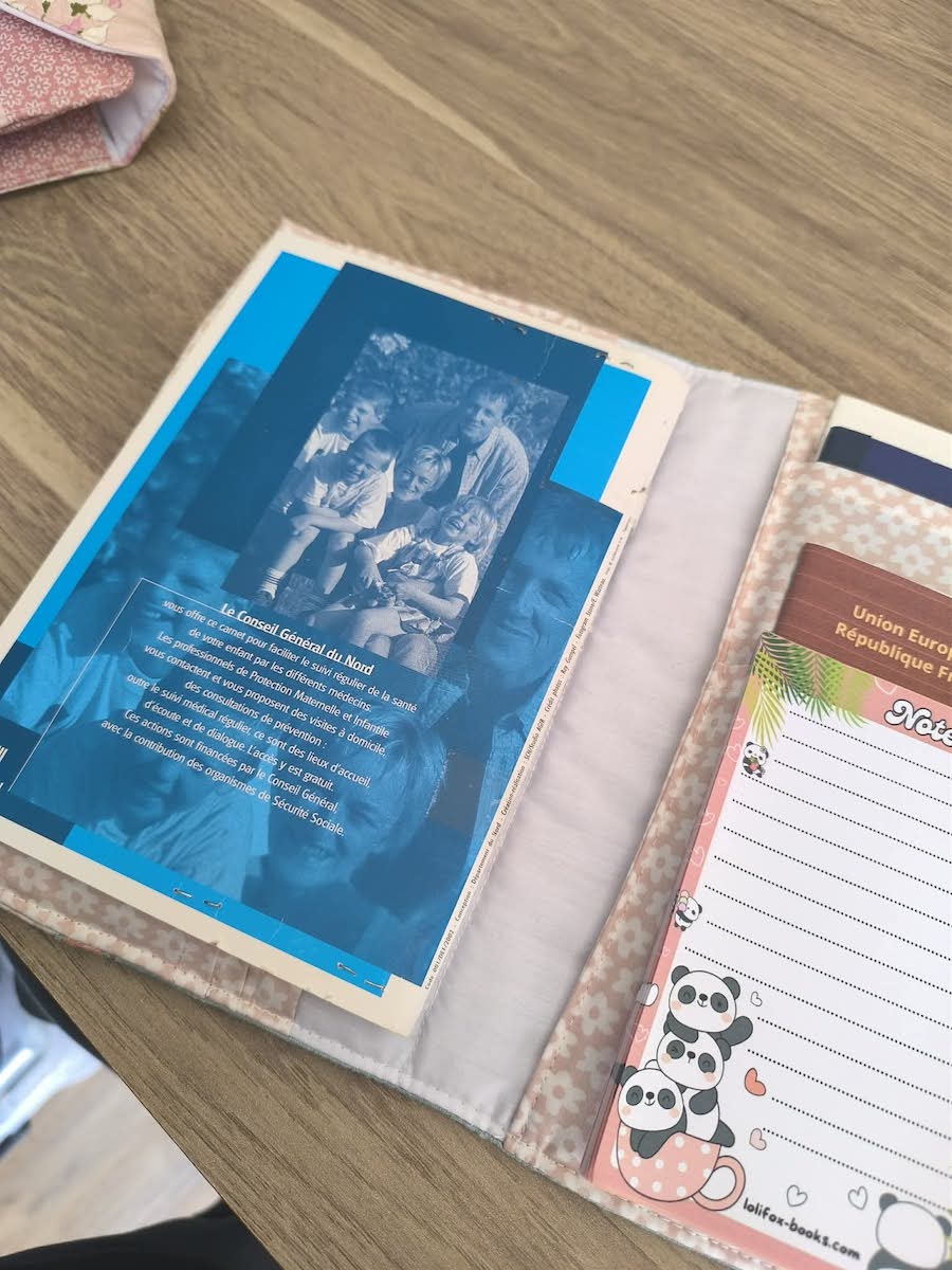 - Une pochette (ex : carnet de santé, agenda, carnet de note, documents…)