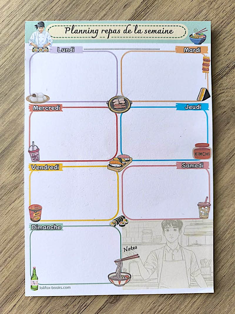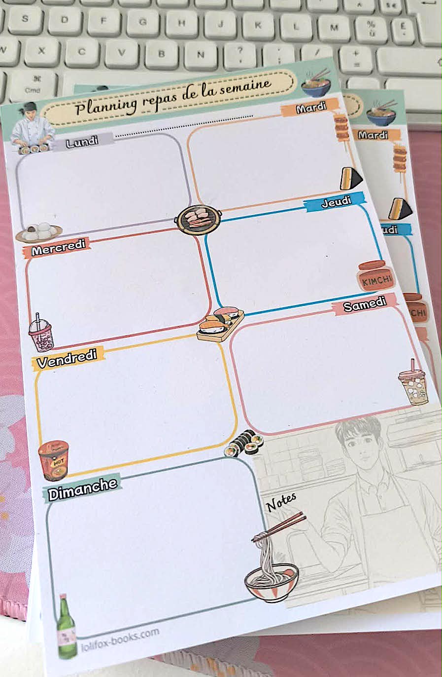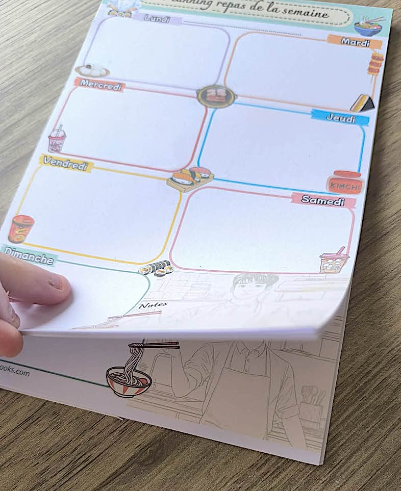 Ce bloc notes inspiré de l’Asie est là pour vous détendre et gérer le planning des repas sur plusieurs semaines et les fiches sont réutilisables pour créer des semaines de menus d’avance.