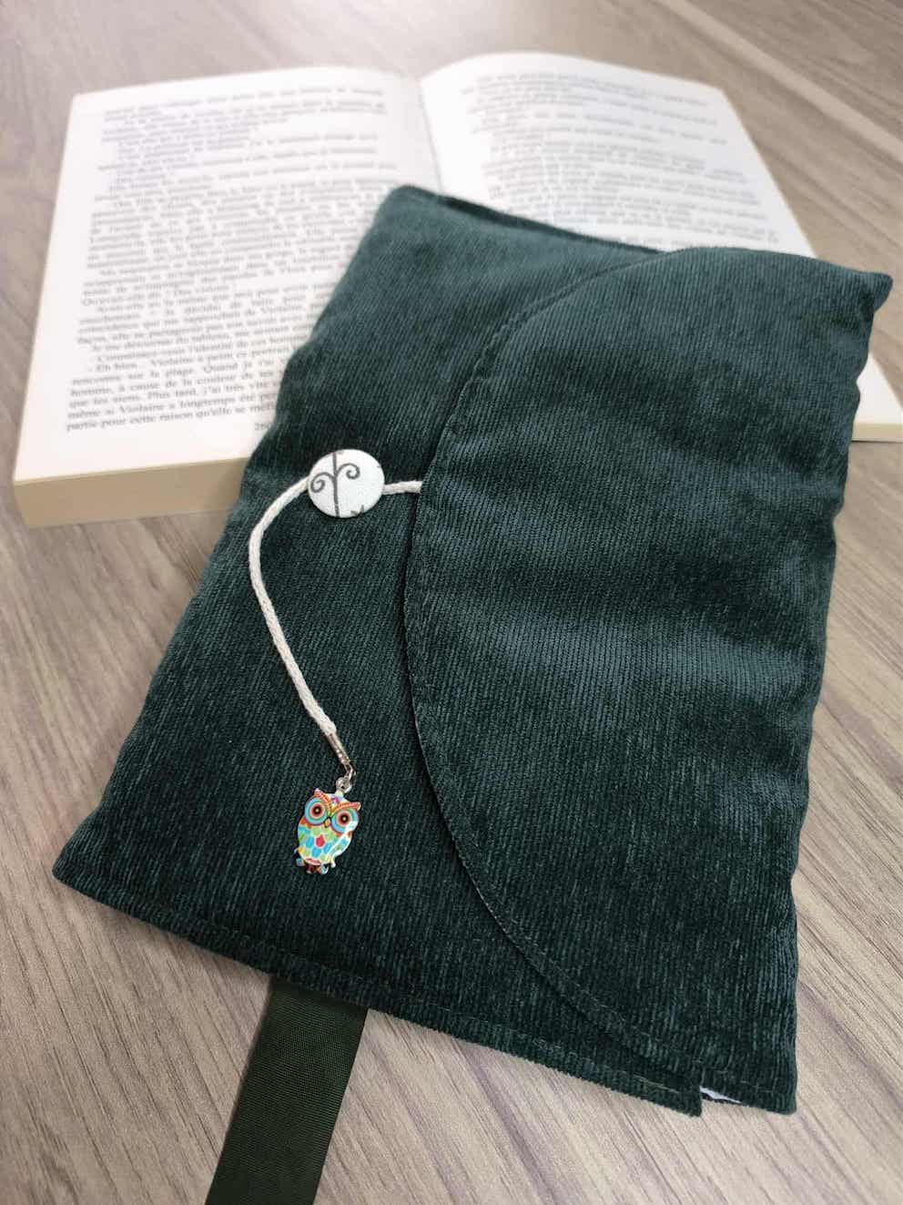 Une housse protège livre (multifonction qui s’adapte aux livres brochés, carnets, agendas etc…)  cocooning, pratique et originale.