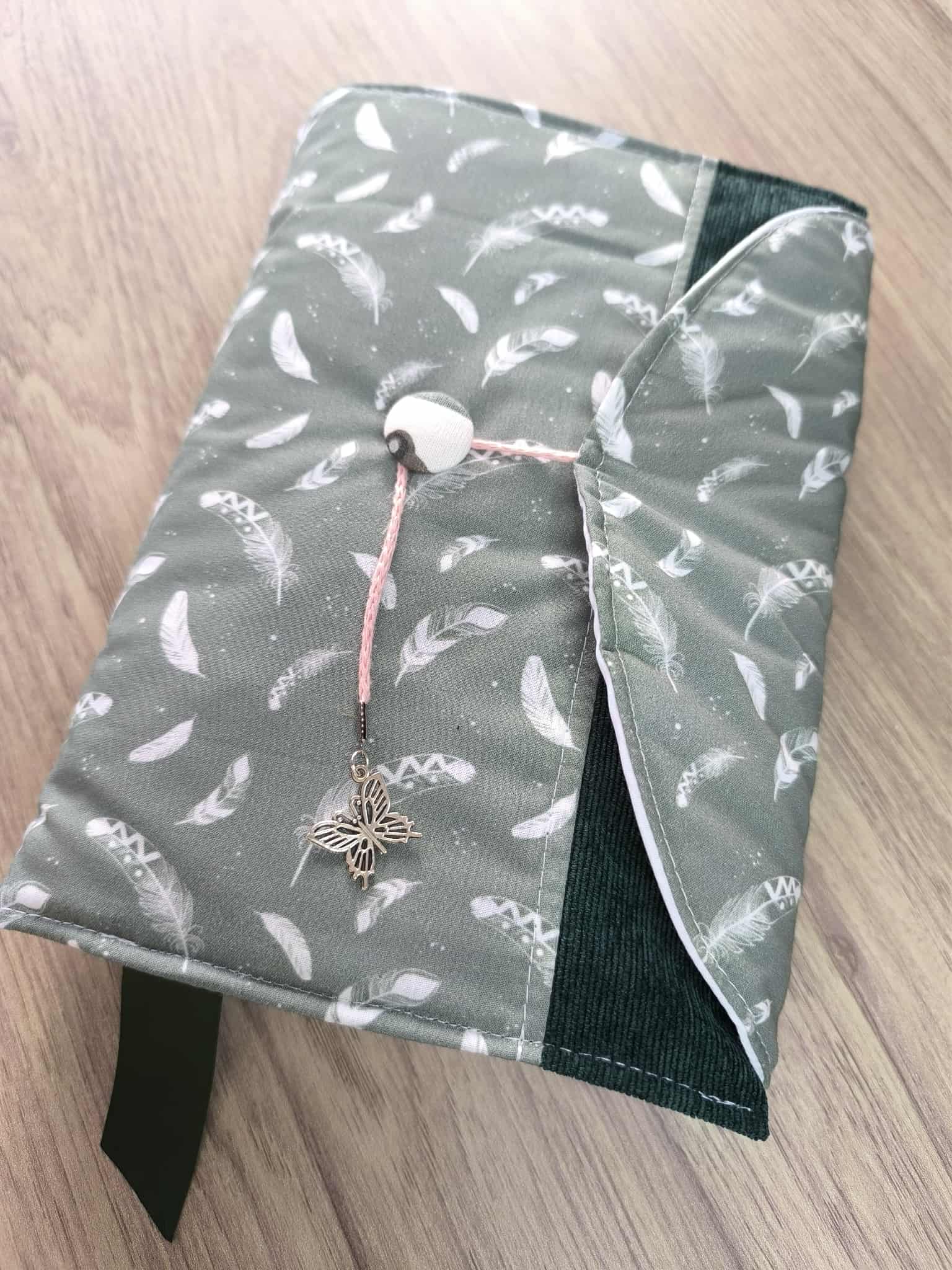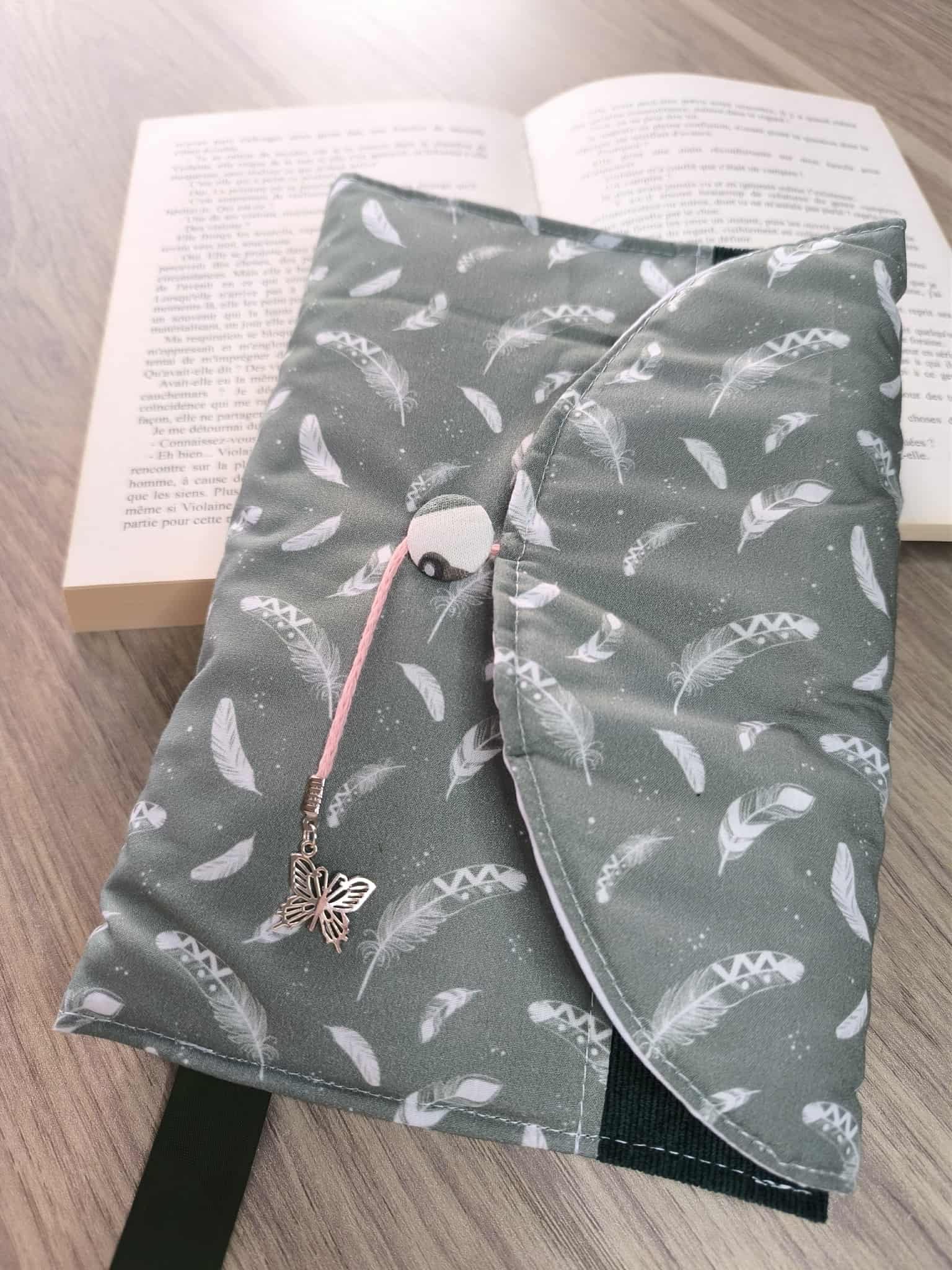 Une housse protège livre (multifonction qui s’adapte aux livres brochés, carnets, agendas etc…)  cocooning, pratique et originale.