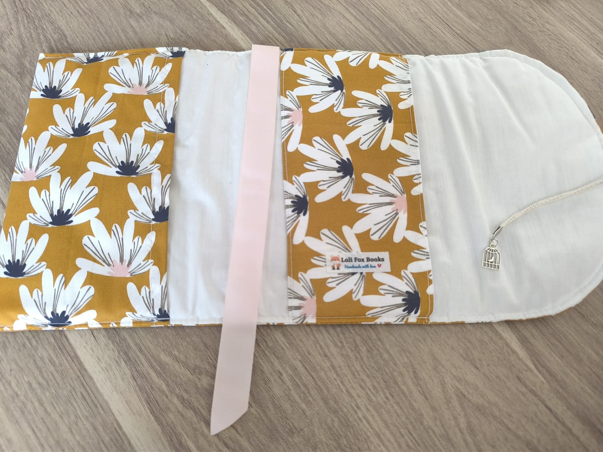 • Enfin votre Loli-housse portefeuille va s’adapter à l’épaisseur de votre livre grâce au système de lien avec une breloque sympa (assortie au tissu) pour la fermer avec classe et rendre unique votre housse.